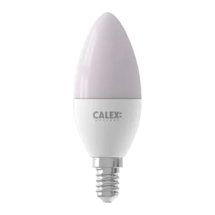 Je kunt er ook voor kiezen om meerdere Calex smart lampen te koppelen aan onder andere een Google Home of Amazon Alexa apparaat. Dit maakt het mogelijk om Calex verlichting via jouw eigen stemgeluid te bedienen. Door het geven van simpele instructies als; ‘Hey Google, dim de lamp eettafel’, heb je dit al snel geregeld! Tevens is deze kaarsvormige E14 Calex Smart verlichting te bedienen via een officiële Calex Smart afstandsbediening. Verder werkt deze Calex lamp op een wandschakelaar, maar niet op een dimmerschakelaar. Ben je op zoek naar Smart verlichting met bijvoorbeeld een andere fitting of in een andere vorm? Klik dan hier om ons volledige assortiment te bekijken!