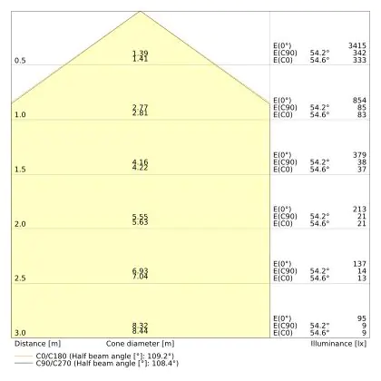 ![]() De kleurcode is een combinatie van de kleurweergave (CRI) en lichtkleur (Kelvin). Het eerste getal is de kleurweergave (1 = zeer slechte kleurweergave, 9 = maximale kleurechtheid). Het tweede en derde cijfer betreft de lichtkleur. Een lamp met kleurcode 830 heeft bijvoorbeeld een goede kleurweergave en straalt een warm wit licht uit (3000K), waar een lamp met de kleurcode 940 een uitstekende CRI heeft en een koel wit licht (4000K) uitstraalt. |