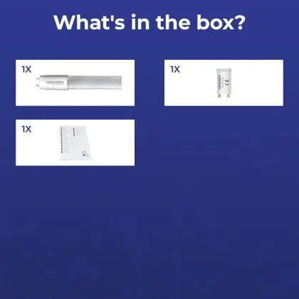 Deze Noxion LED TL buis heeft een Lumen / Watt efficiëntie van lm/W. Dit is de waarde die je verkrijgt door de lichtopbrengst (1350 Lumen) te delen door het wattage (8W) van deze lichtbron. Hoe weet je of jouw lichtbron een goede efficiëntie heeft? In dit geval ligt de lm/W waarde boven de 65. Je kunt er ook voor kiezen om een LED geïntegreerd TL armatuur te kopen. Hierbij heb je de keuze uit diverse (waterdichte) LED montagebalken, die in een divers aantal Lumen verkrijgbaar zijn. Een (dimbaar) LED paneel is ook een slimme optie, met name voor ruimtes met een systeemplafond (eenvoudige installatie) en kantoren (UGR<19 varianten).