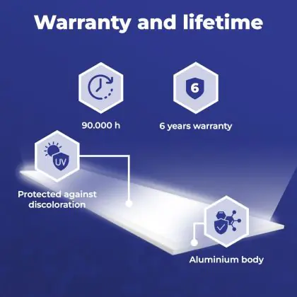 Met de aanschaf van dit LED paneel van 120x30cm maak je in meerdere opzichten een goede keuze. Met een gemiddelde levensduur van 90000 uur ben je verzekerd van een duurzaam product, dat vele jaren optimaal blijft presteren. Bovendien draag je een steentje bij aan een schoner milieu, want LED verlichting vermindert de C02 uitstoot en bevat geen giftige stoffen zoals kwik.