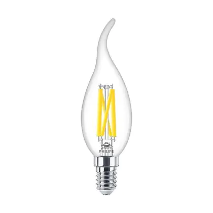 Beschrijving Voordeelpak 10x Philips MASTER LED E14 Gebogen-tip Kaars Filament Helder 3.4W 470lm - 922-927 Dim To Warm | Beste Kleurweergave - Dimbaar - Vervangt 40W