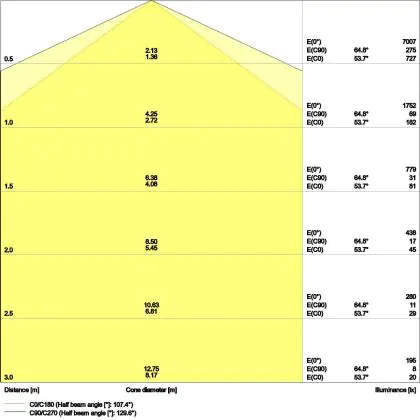 De lichtopbrengst (Lumen), geeft weer hoe krachtig het uitgestraalde licht is. Dit is belangrijk om te weten om de juiste sfeer te creëren. 0 tot 400 Lumen is bij uitstek geschikt voor accent- of sfeerverlichting. Een hoger aantal Lumen is, afhankelijk van de grootte van de ruimte, beter geschikt als ondersteunende- of basisverlichting. Heb je plafonds hoger dan 4 meter, dan is een lichtopbrengst van minimaal 8000lm aan te raden indien heldere verliching gewenst is (vb. in werkomgevingen).